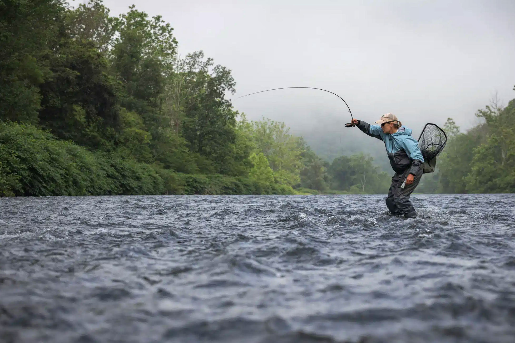 Anita Coulton Euro nymphing on the West Branch of the Delaware River. Photo courtesy Jay Riley